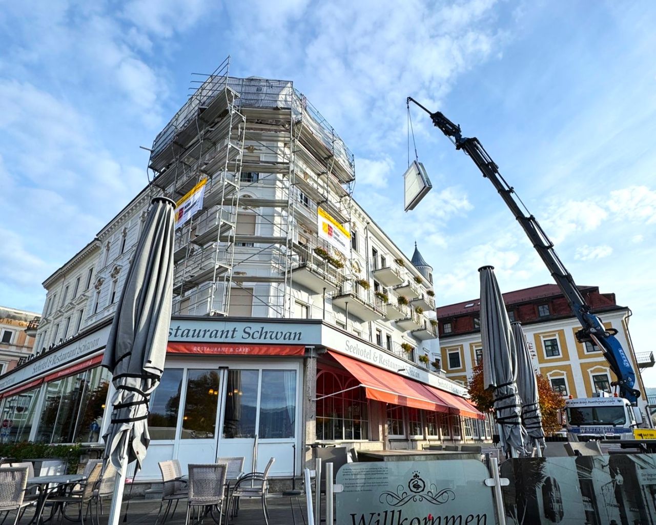 In Gmunden am Traunsee (AUT) wurde am Rathausplatz ein weitläufiges, trapezförmiges Dachfenster installiert – eine massgeschneiderte Lösung, die sich harmonisch in die historische Architektur des Gebäudes einfügt.